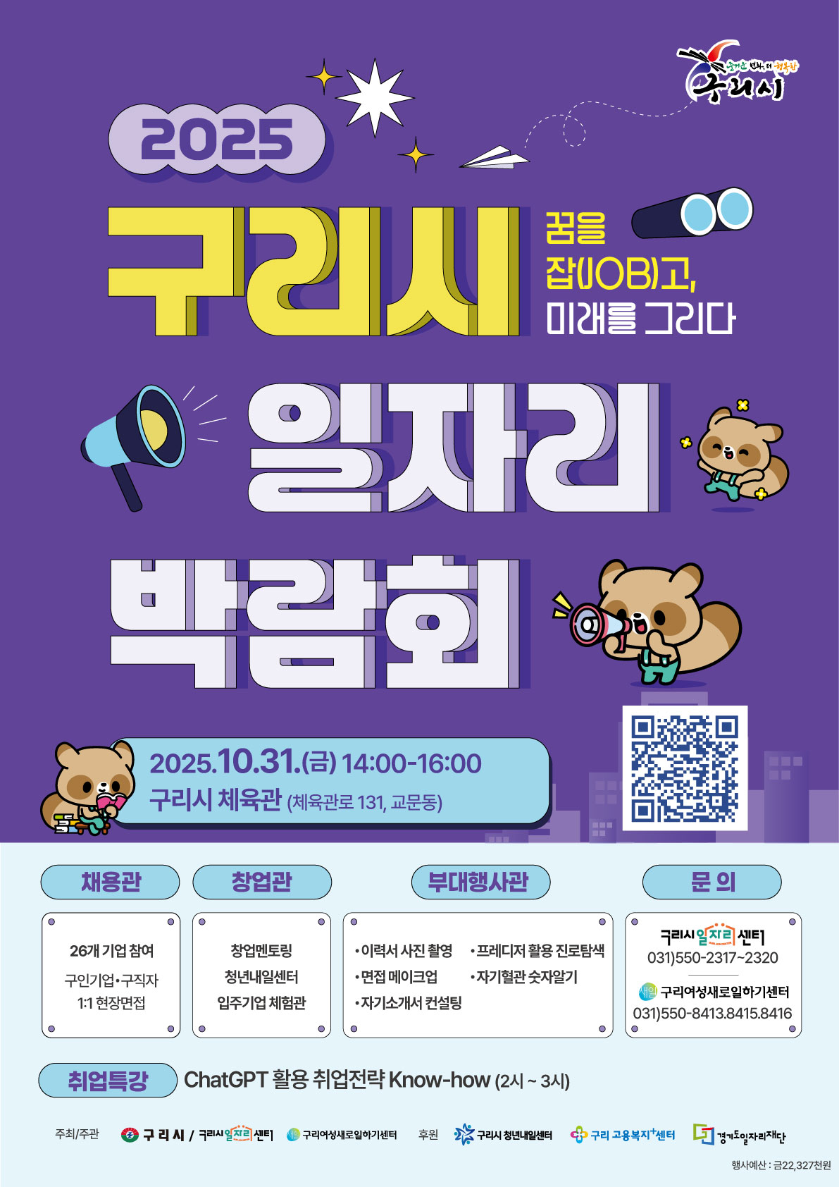 행사 관련 문의는 구리시 일자리센터(☎ 031-550-2317~2320, 2596)또는 구리여성새로일하기센터(☎ 031-550-8413, 8415, 8416)로 가능합니다.