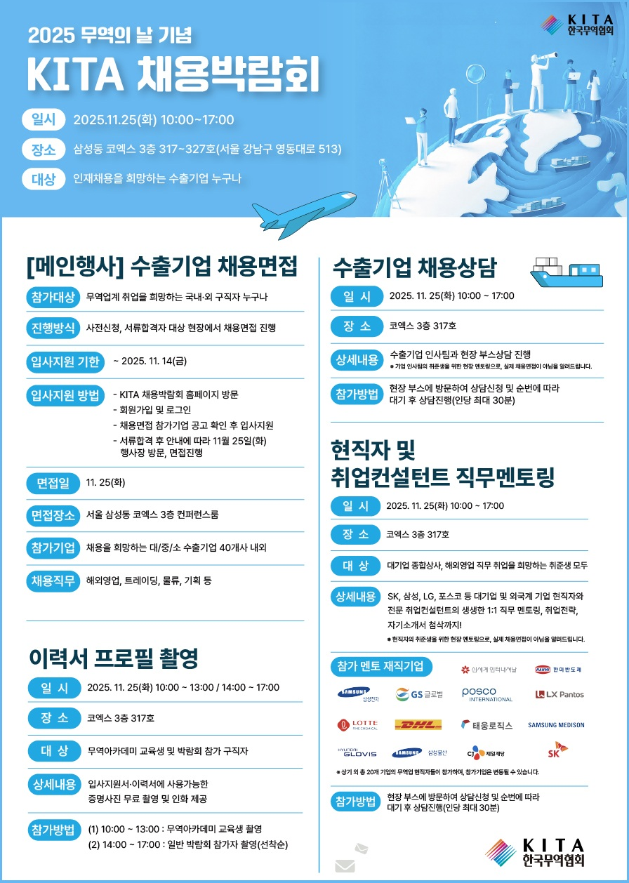 👉 참가 신청 및 자세한 일정 확인: [https://jobfair.kita.net/] (입사지원 마감: 2025.11.16 23:59까지)