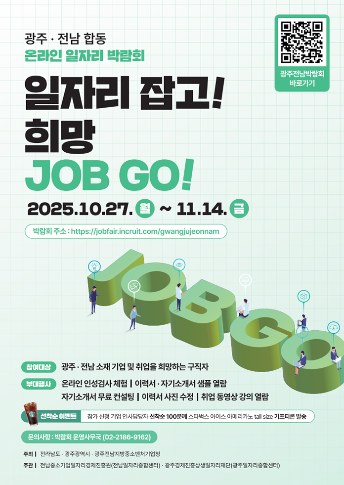 전라남도는 도내 기업의 인력난을 해소하고 구직자들에게 보다 폭넓은 취업 기회를 제공하기 위해 ‘2025 하반기 광주·전남 합동 온라인 일자리박람회’를 개최합니다. 이번 박람회는 광주광역시와 전라남도가 공동으로 주최하고, 지역의 주요 일자리 유관기관이 협력하여 추진하는 대규모 온라인 채용 행사로, 구직자와 기업이 시간과 장소의 제약 없이 참여할 수 있는 점이 큰 특징입니다.